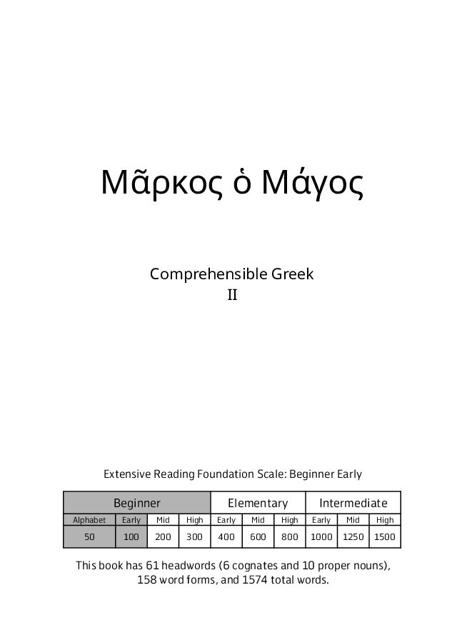 In this novella, John Foulk has translated and adapted Lance Piantaggini’s Latin Novella, Marcus Magulus, into Koine Greek for beginner-level Greek language learners of all ages.